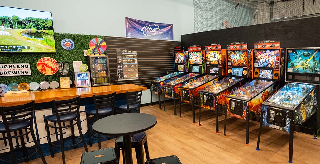 While the flippers are firing, the bar’s open and the cooler’s fully stocked. We’ve got a wide selection of canned beer, cider, seltzers, wine, and THC-infused drinks (Delta) — all available to enjoy while you play.