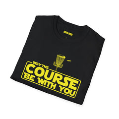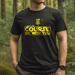 Channel the force on your next throw with our "May the Course Be With You" disc golf t-shirt. Made for the ultimate disc golf enthusiasts, this shirt effortlessly merges passion for the sport with iconic wit.