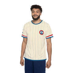 The Second City Chains Home Disc Golf Jersey ties disc golf to ballpark tradition with black chain-inspired pinstripes on a cream base. Made from lightweight, moisture-wicking fabric that dries fast, this performance disc golf jersey keeps you cool and moving comfortably during every round.