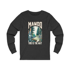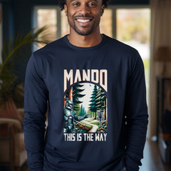 Navigate your next disc golf game with a touch of humor and strategy in our "This Is The Way - Mand-o-tory" Long Sleeve Shirt. This shirt is a playful yet functional addition to your disc golf attire, perfect for those brisk mornings or cool evenings on the course. With its classic crewneck, this long-sleeve tee is 100% made from combed ring-spun cotton, perfectly paired with jeans for a casual ensemble.