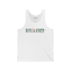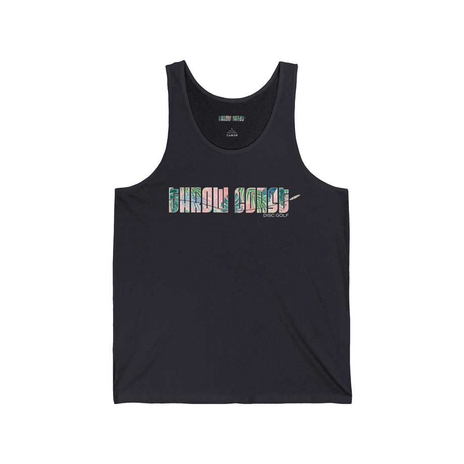 Elevate your summer style with the Throw Coast Disc Golf Tropical Tank Top, which is ideal for hot summer weather. This tank top features a fun, tropical-patterned Throw Coast Disc Golf logo. This must-have unisex jersey tank top fits like a well-loved favorite.
